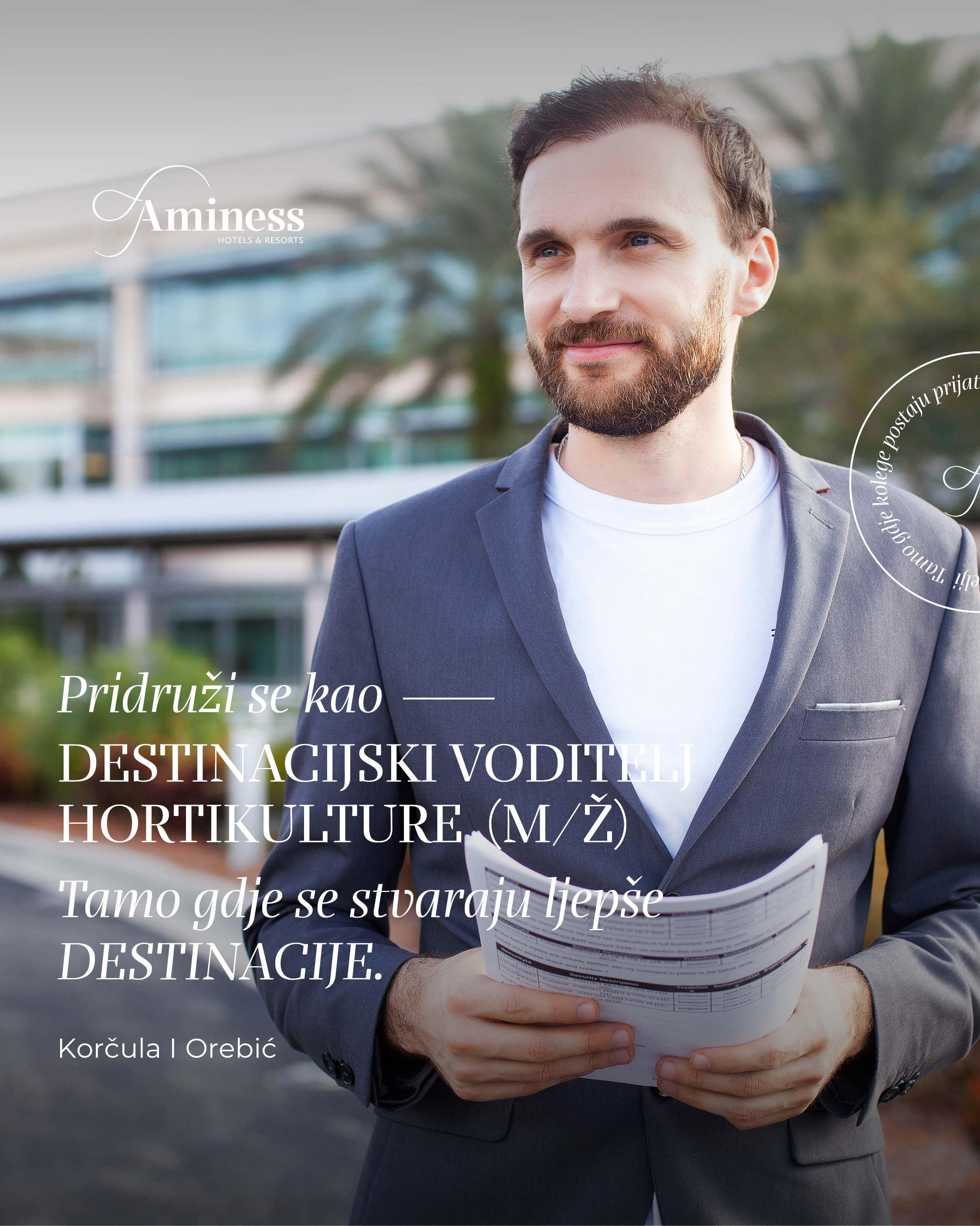 Tražite uzbudljivu i dinamičnu karijeru u turizmu? Aminess Hotels & Resorts, najbrže rastuća turistička kompanija u Hrvatskoj, sa svojih 18 hotela, 5 kampova i 3 resorta s vilama i apartmanima, nudi vam savršenu priliku da nam se pridružite i stvorite nove poslovne veze koje traju.