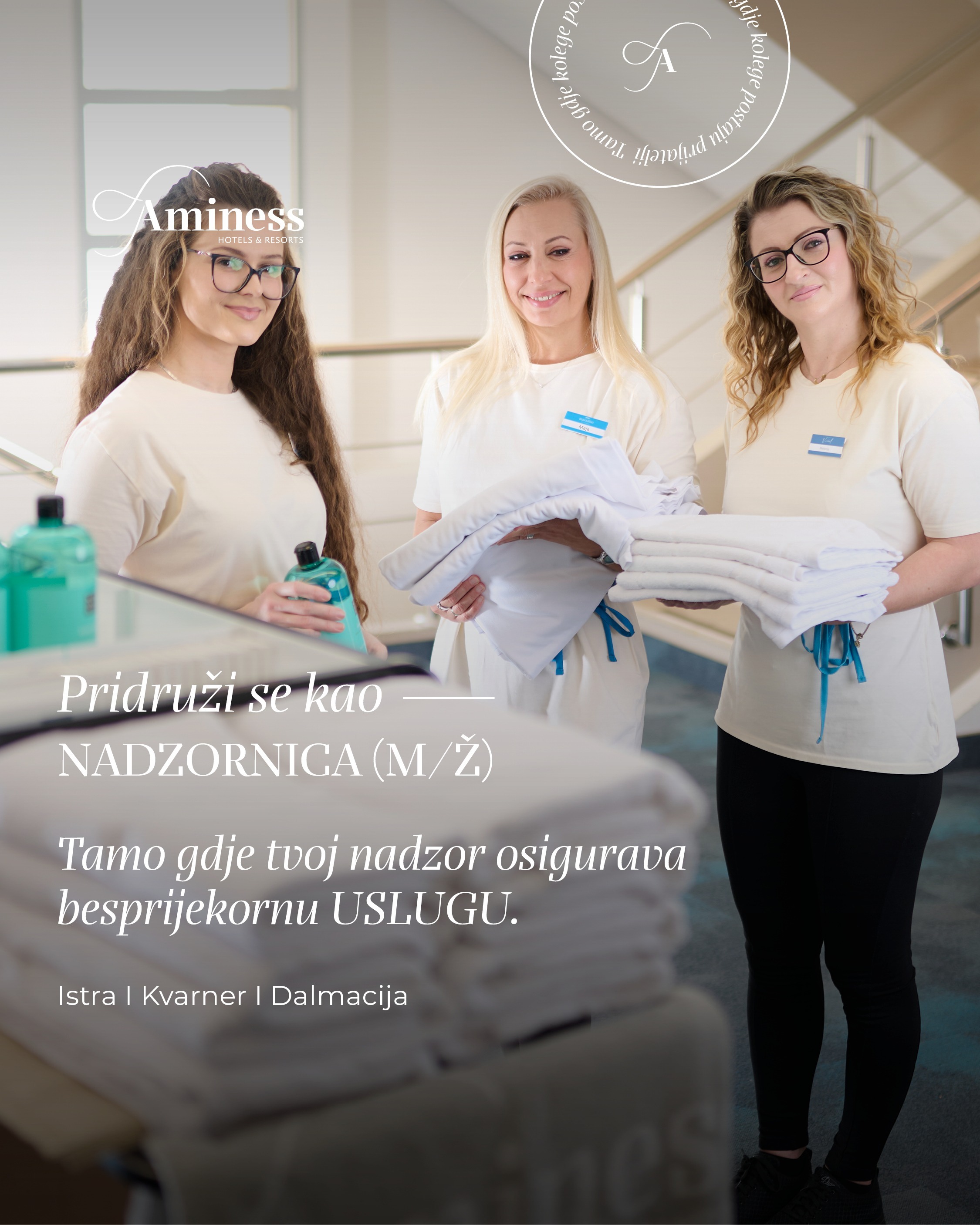 Naši objekti nalaze se u najatraktivnijim destinacijama Hrvatske – od Istre i Kvarnera, preko Paga i Makarske, Brača, Hvara, Korčule, Pelješca, a odnedavno i u Karlovcu. U Aminessu brinemo o svim našim zaposlenicima, redovito organiziramo interne i eksterne edukacije te osiguravamo najbolje benefite u turizmu.