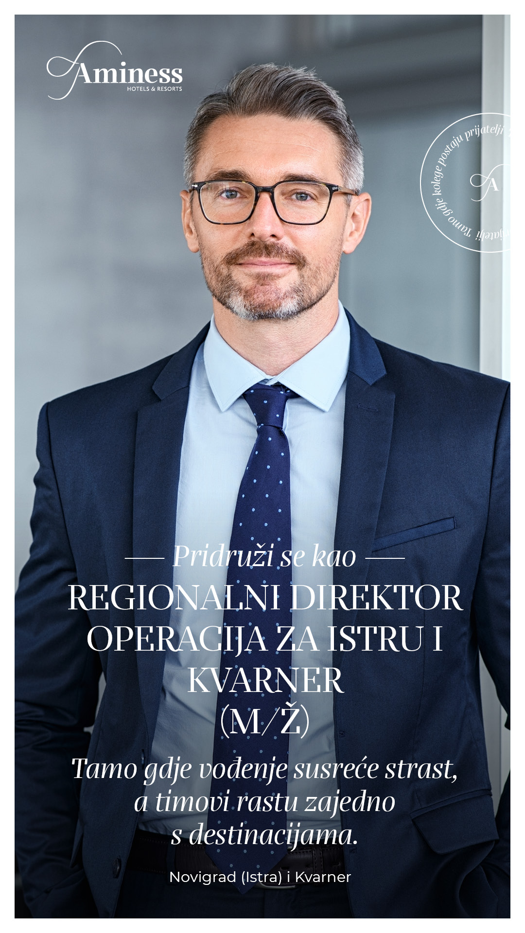 Zbog daljnjeg rasta našeg poslovanja tražimo upravo takvu osobu: lidera koji razumije operacije, ali prije svega razumije ljude. Tražimo proaktivnu, organiziranu i vizionarsku osobu koja će kao Regionalni direktor operacija (m/ž) povezivati timove, razvijati destinacije i osiguravati da standardi kvalitete i gostoljubivosti po kojima je Aminess prepoznatljiv ostanu na najvišoj razini.