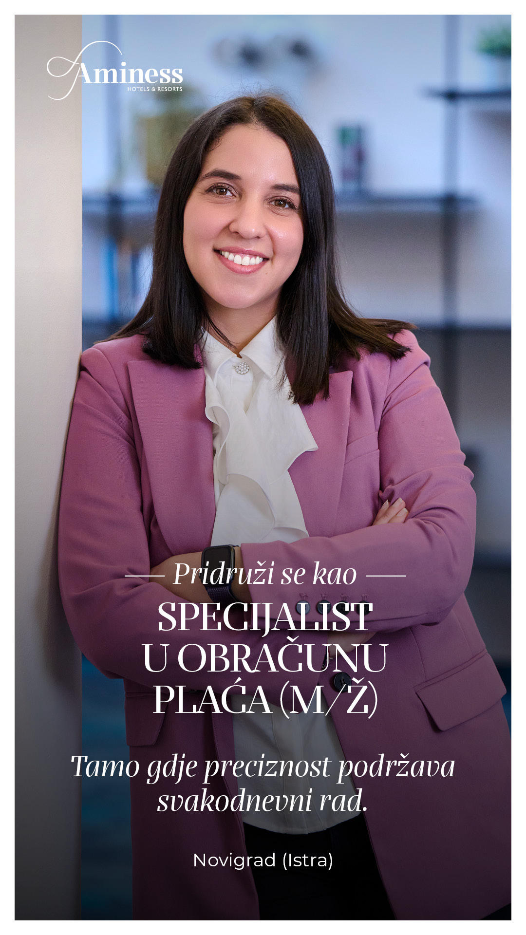 Ako ste motivirani i predani radu te želite izgraditi dugoročnu i uspješnu karijeru u turizmu - Aminess Hotels & Resorts je idealno mjesto za vas. Pridružite nam se i postanite dio, sve veće, Aminess obitelji.