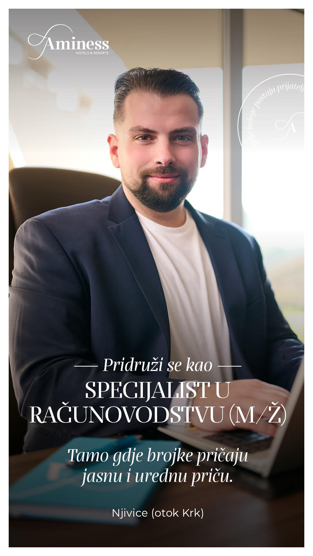 Ako ste motivirani i predani radu te želite izgraditi dugoročnu i uspješnu karijeru u turizmu - Aminess Hotels & Resorts je idealno mjesto za vas. Vašu prijavu pošaljite nam do 08.05.2026. te postanite dio, sve veće, Aminess obitelji.