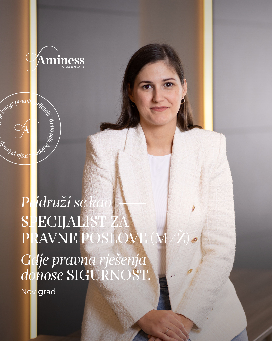 Tražite uzbudljivu i dinamičnu karijeru u turizmu? Aminess Hotels & Resorts, najbrže rastuća turistička kompanija u Hrvatskoj, sa svojih 18 hotela, 5 kampova i 3 resorta s vilama i apartmanima, nudi vam savršenu priliku da nam se pridružite i stvorite nove poslovne veze koje traju.