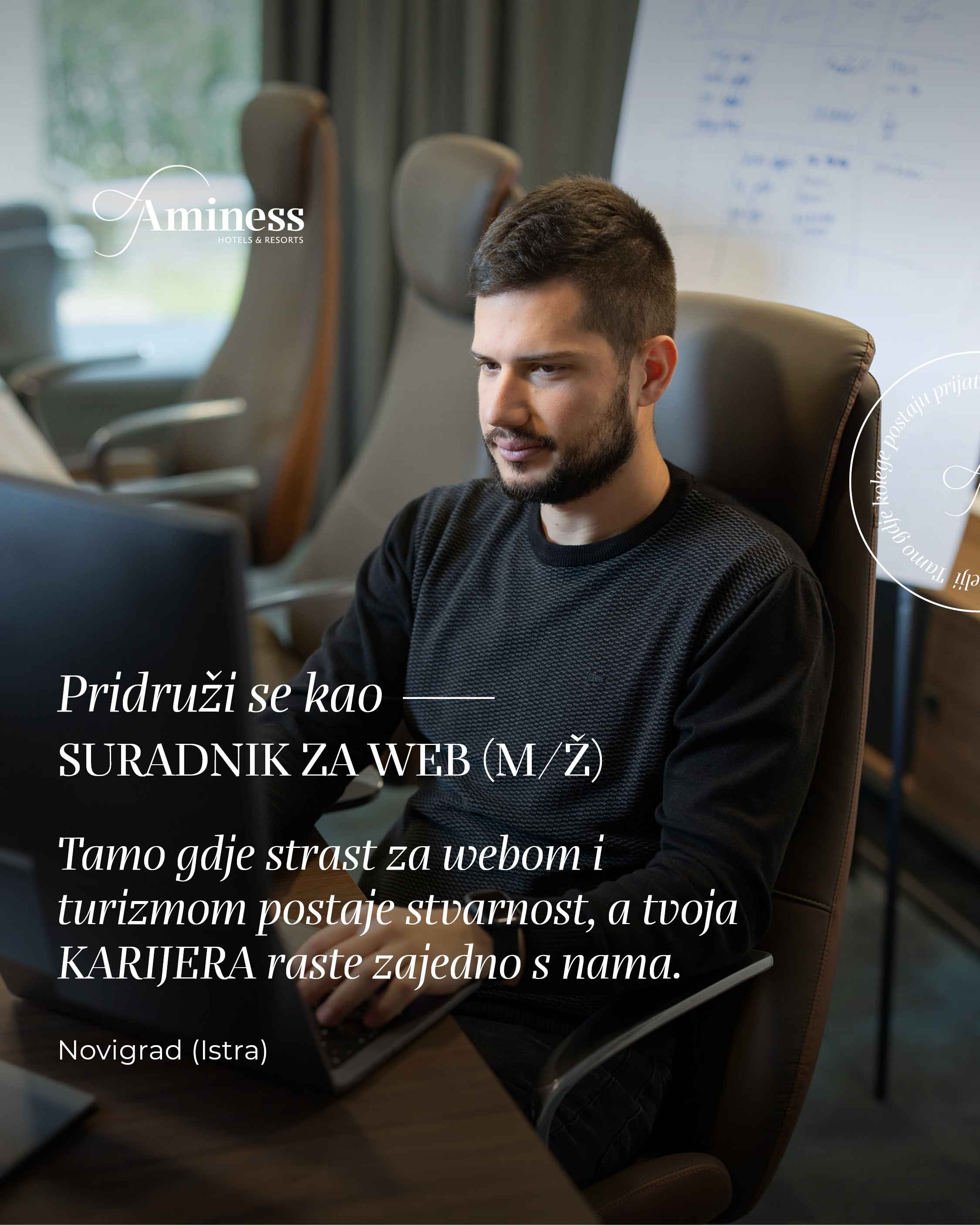 Tražite uzbudljivu i dinamičnu karijeru u turizmu? Aminess Hotels & Resorts, najbrže rastuća turistička kompanija u Hrvatskoj, sa svojih 30 objekata, nudi vam savršenu priliku da nam se pridružite i stvorite nove poslovne veze koje traju.