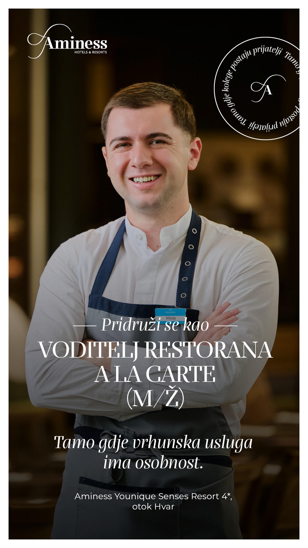 Za naš objekt Aminess Younique Senses Resort 4* na otoku Hvaru, zapošljavamo: