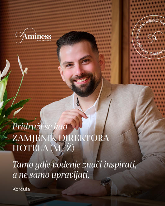 Ako ste motivirani i predani radu te želite izgraditi dugoročnu i uspješnu karijeru u turizmu - Aminess Hotels & Resorts je idealno mjesto za vas. Pridružite nam se i postanite dio, sve veće, Aminess obitelji!